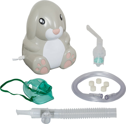 Designed to reduce anxiety during treatments, the child-friendly Roscoe Bunny Nebulizer provides effective treatments with a state-of-the-art piston compressor. Delivers 43 psi at maximum pressure and 16 psi operating pressure (liter flow range 5 - 8 LPM) and weighs only 3.4 pounds. Equipped with a built-in carrying handle and a convenient nebulizer parking post.